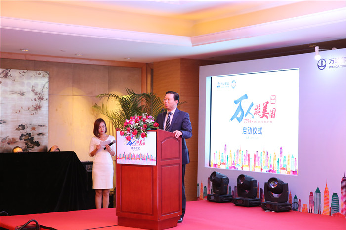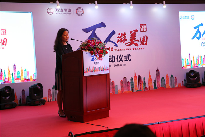 萬達(dá)集團(tuán)莫躍明副總裁、美國旅游推廣局中國區(qū)總監(jiān)李彥珺女士、萬達(dá)旅業(yè)副總經(jīng)理徐道明、中科惠澤常務(wù)副總裁李帥先生出席活動并致辭。